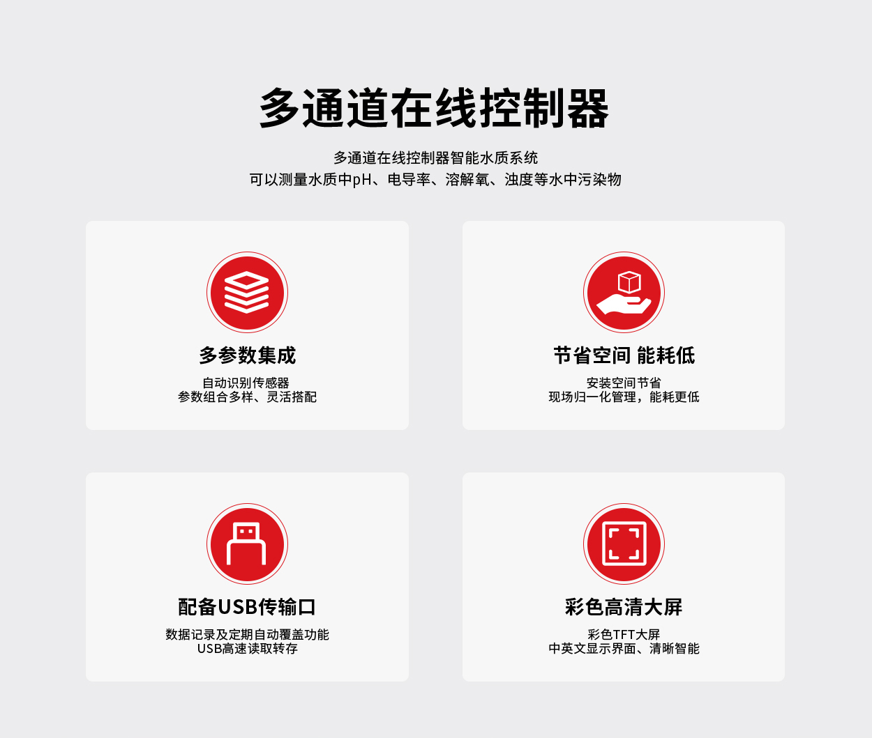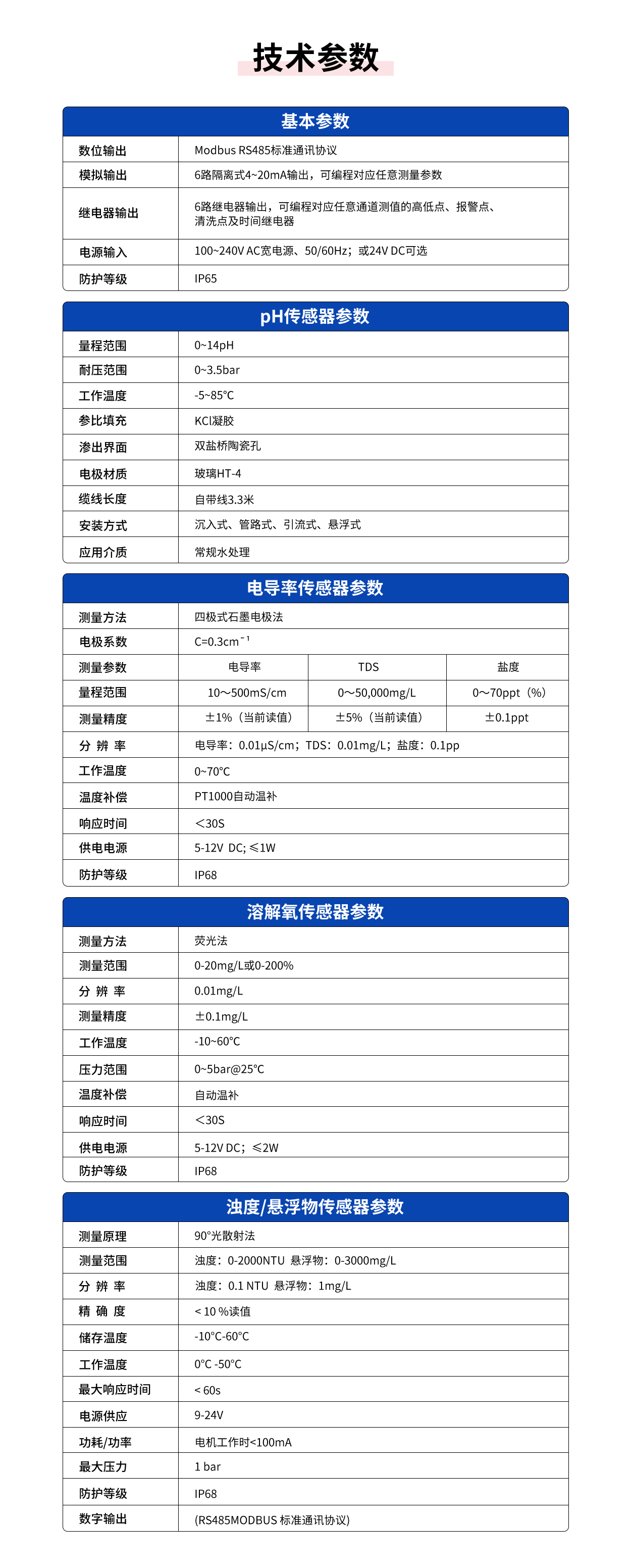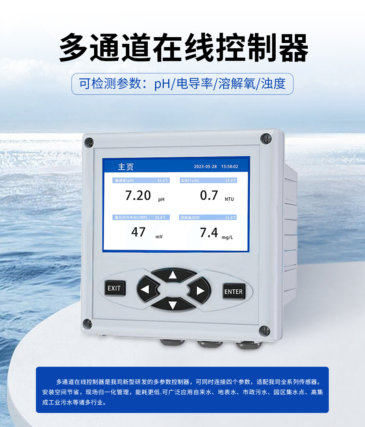 常规检测项目:pH、电导率、溶解氧、浊度