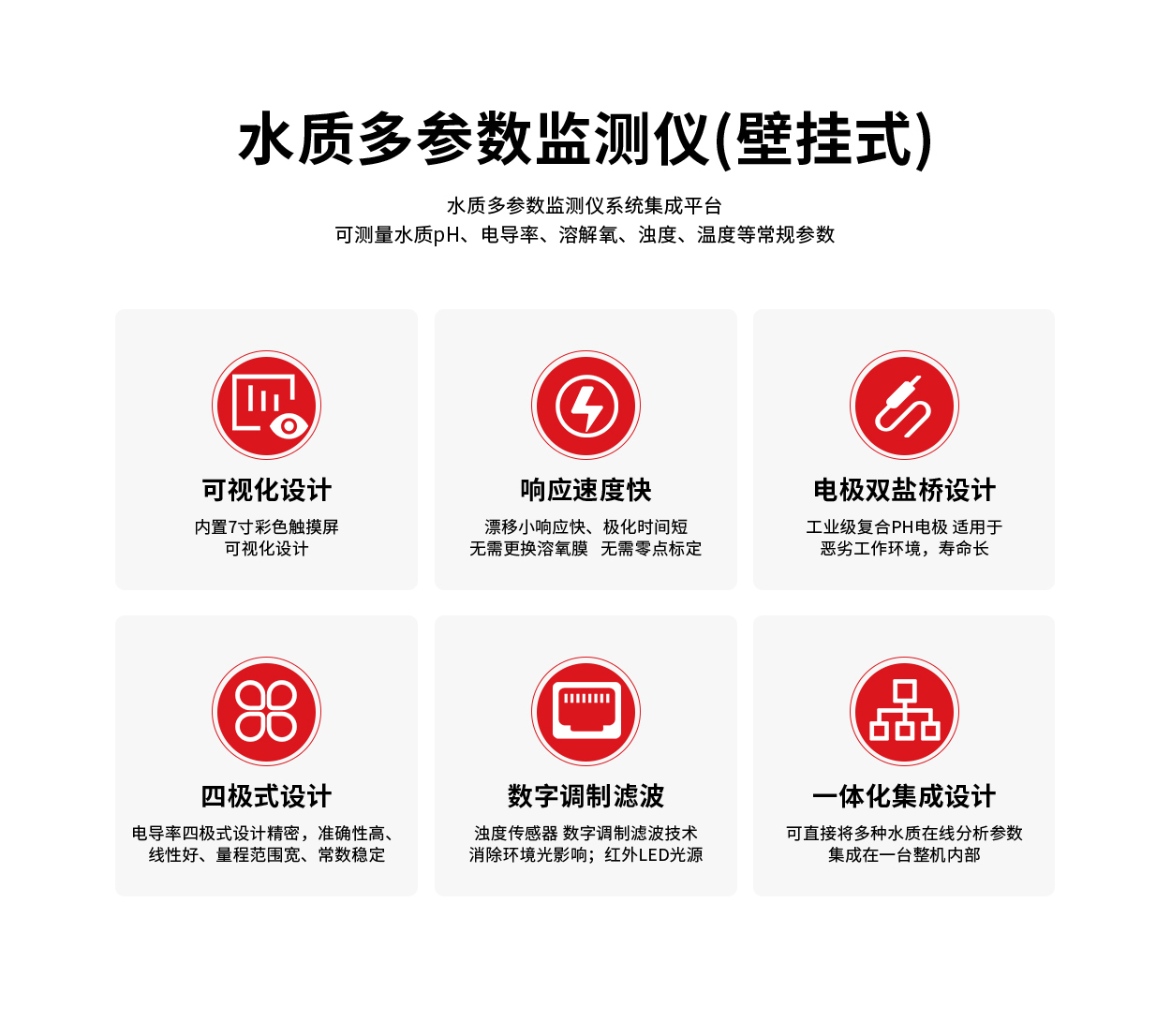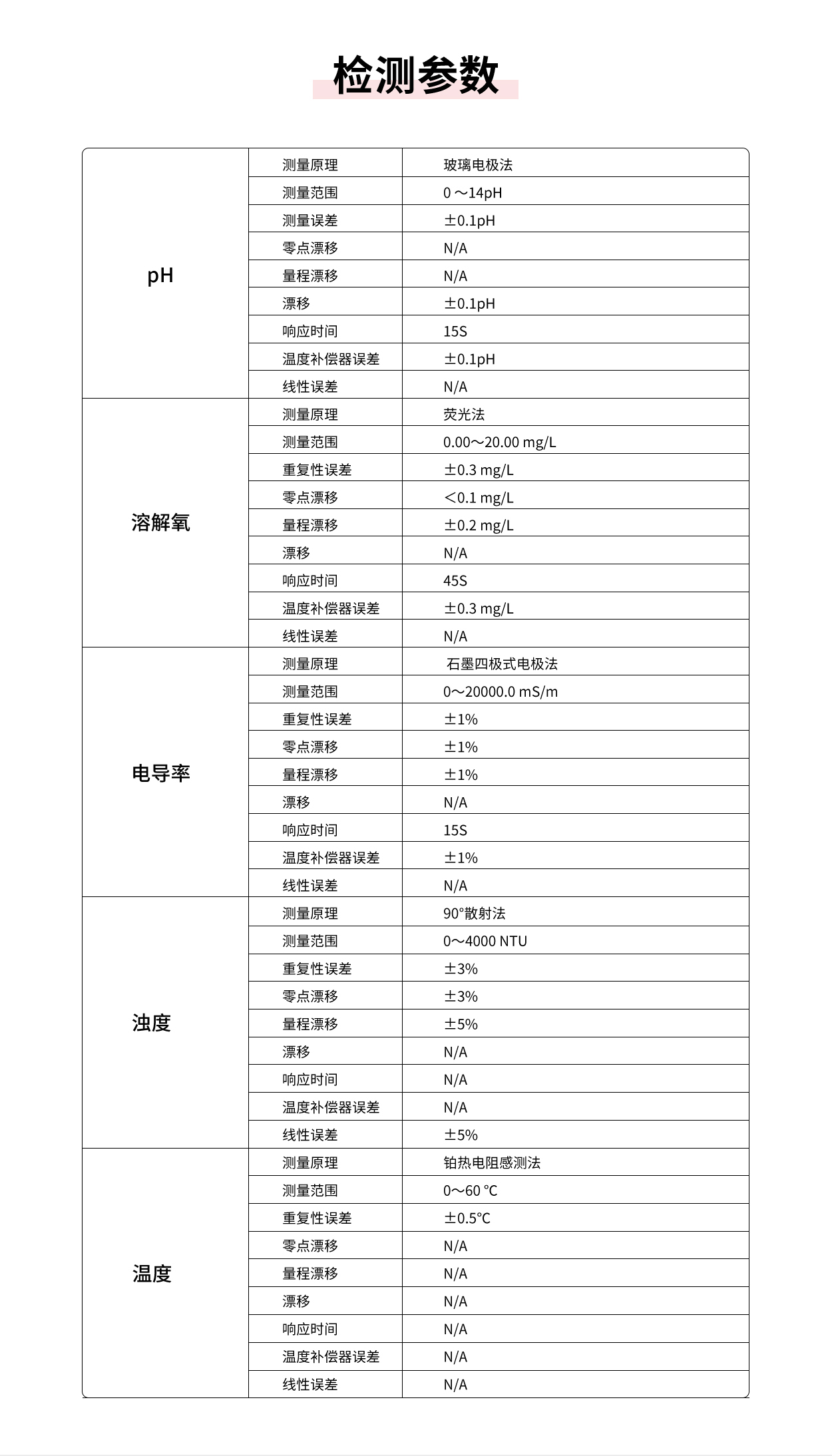 常规检测项目:pH、电导率、溶解氧、浊度、温度